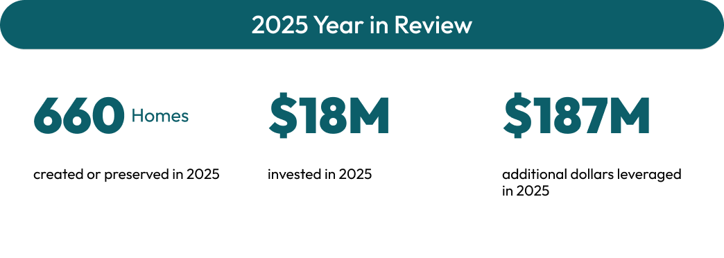 - Monitoring the progress of 2025-funded developments as they move toward construction and completion.