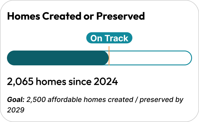 Wake County is making measurable progress to expand housing affordability, prevent homelessness, and strengthen community stability. Through targeted investments, cross-sector partnerships, and data-driven strategies, the County is increasing the supply of affordable homes, preserving existing affordability, and improving outcomes for residents experiencing homelessness.